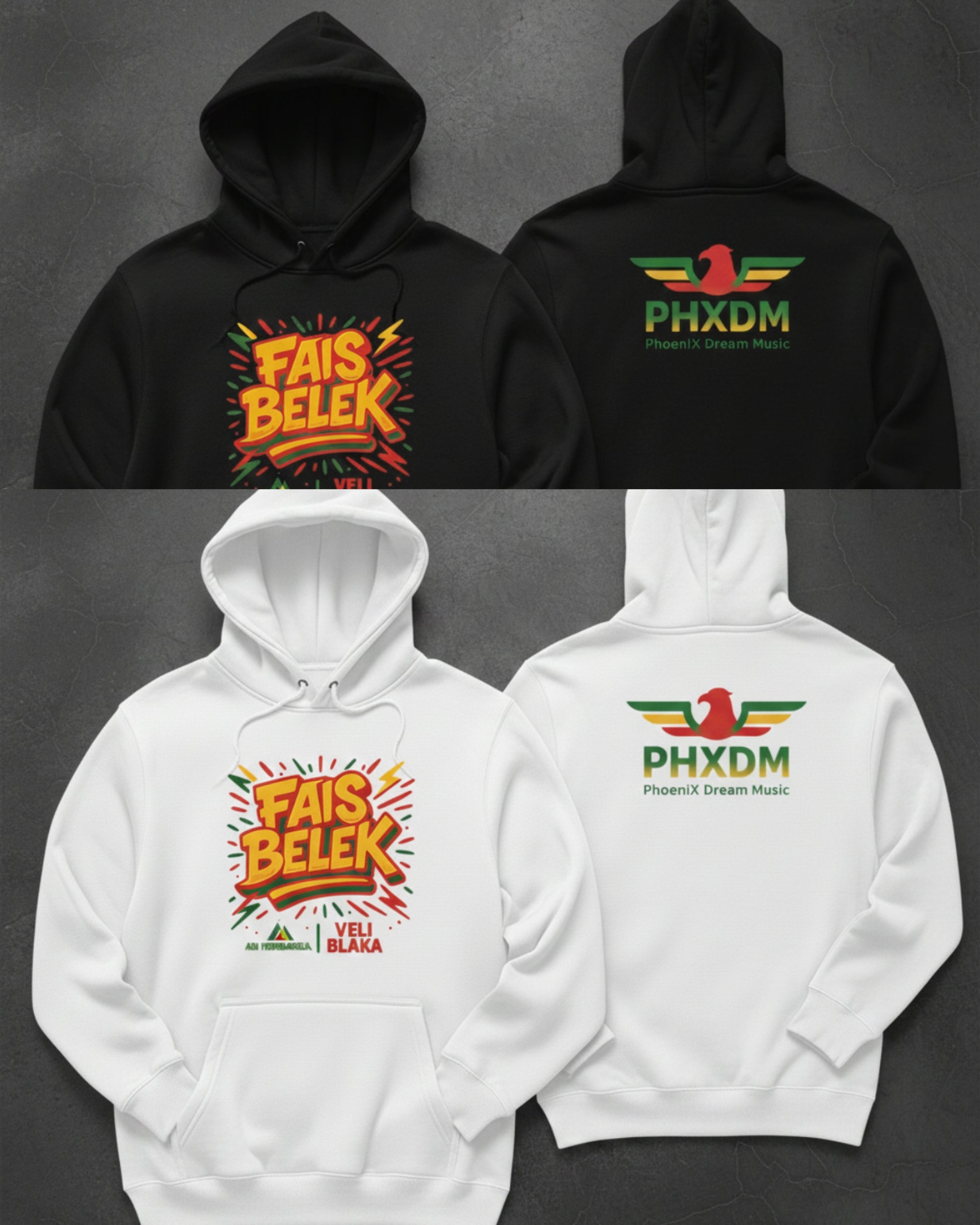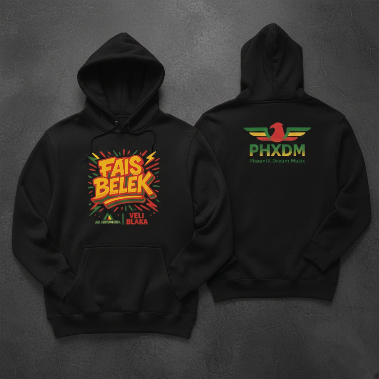 Entrez dans l’univers d’AB Mendossa avec le sweat officiel “Fais Belek x PHXDM”, une pièce exclusive inspirée du single Fais Belek en collaboration avec Véli Blaka.